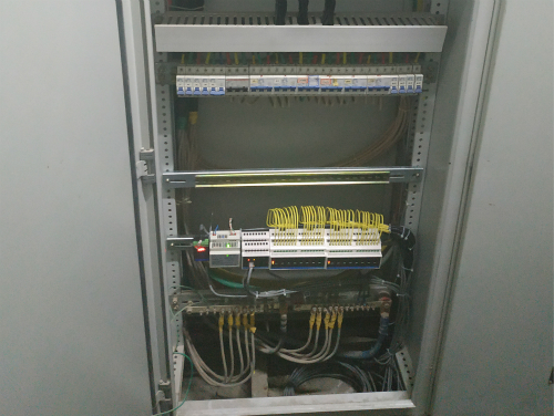 該項(xiàng)目采用了VSU總線系列的網(wǎng)關(guān)主機(jī)模塊、電源模塊、級聯(lián)模塊、4路、8路、12路、16路開關(guān)執(zhí)行模塊、連接片及另附邏輯主機(jī)、溫度傳感器。232串口模塊收集周圍溫度信息,發(fā)送信息到網(wǎng)關(guān)主機(jī)至邏輯主機(jī),通過邏輯主機(jī)內(nèi)設(shè)置的溫度開關(guān)范圍,再發(fā)送指令至網(wǎng)關(guān)主機(jī)實(shí)現(xiàn)空調(diào)開關(guān)。