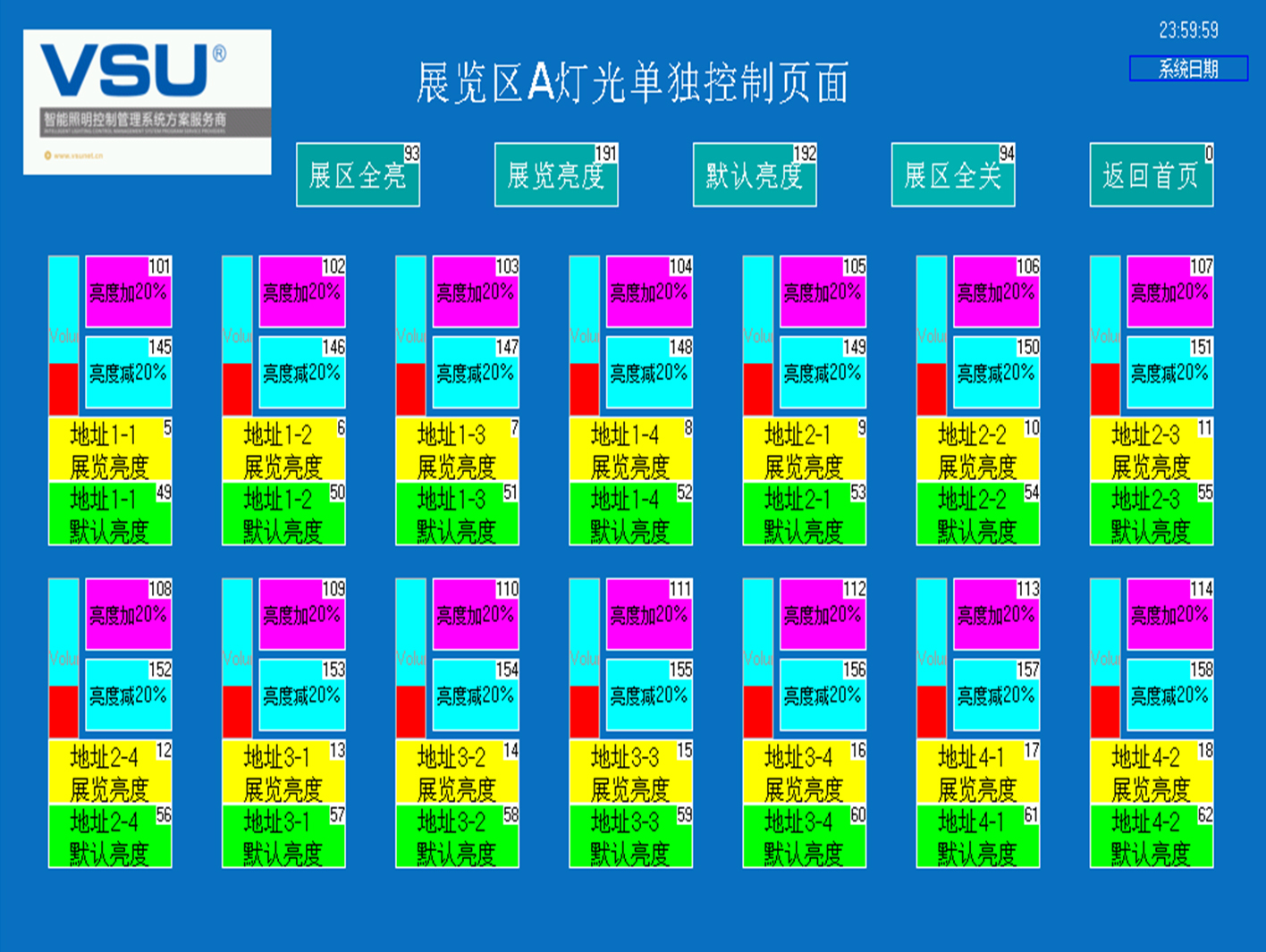該項(xiàng)目采用的VSU照明設(shè)備有:4路16A智能照明模塊、人體感應(yīng)器、6路IO模塊、智能6鍵面板、網(wǎng)關(guān)主機(jī)、電源模塊、7寸安卓觸摸屏。自動感應(yīng)人流,調(diào)節(jié)燈光亮度,在不減少旅客游覽體驗(yàn)的情況下節(jié)省電能消耗。