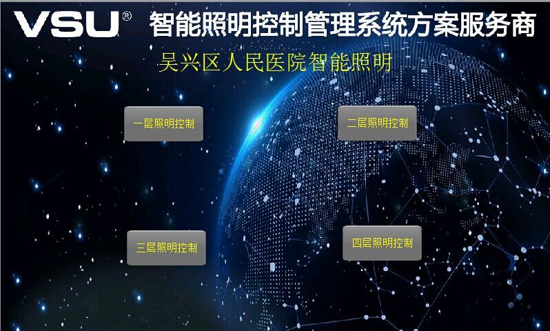 上圖為吳興區(qū)人民醫(yī)院項(xiàng)目VSU智能照明電腦終端控制界面:一層照明控制、二層照明控制、三層照明控制、四層照明控制,可單控全控,讓醫(yī)院內(nèi)的燈光控制更加便捷,同時(shí)節(jié)省不必要的能源消耗。