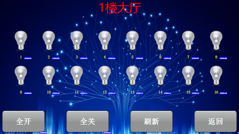 控制項目內(nèi)的所有燈光照明,每個燈光回路可實(shí)現(xiàn)單獨(dú)控制,并設(shè)計了多種控制按鍵,如單個回路的控制開關(guān)、各個區(qū)域房間的控制開關(guān)、各個樓層的全開全關(guān)、三層樓的全開全關(guān)等,使燈光控制變得更加智能、更加方便。