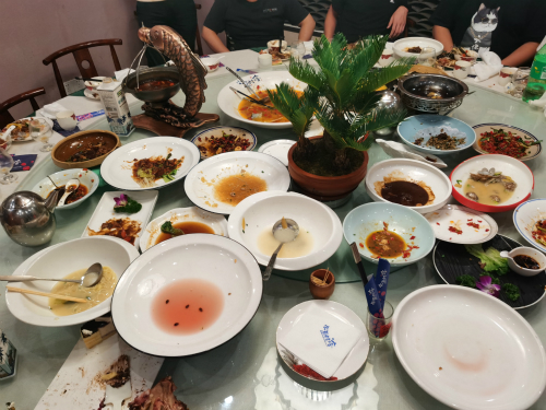 在推上蛋糕,唱完生日歌,送上祝福,人人酒足飯飽之后,才發(fā)現(xiàn)團(tuán)建活動(dòng)來到了最高潮——小游戲。一個(gè)考驗(yàn)反應(yīng)力、專注力的小游戲,做錯(cuò)或者沒反應(yīng)過來的人都得接受旁邊人幫自己夾的“一口”菜。真是一口還是半碗,小編就不說了,下面的圖片表明了事情的結(jié)果。