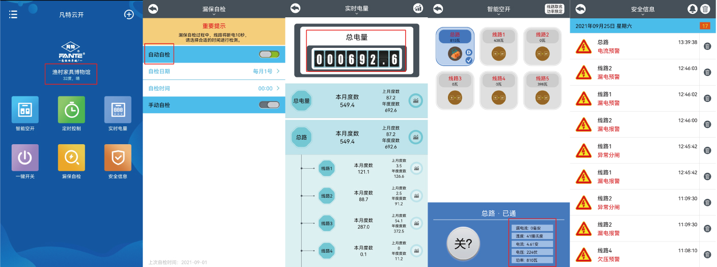 傳統(tǒng)空開發(fā)生短路時,斷電不精準、不及時,在斷電前線路已經(jīng)起火燃燒;漏電保護過于遲鈍,在發(fā)生觸電傷亡后電路依然暢通;無法實現(xiàn)數(shù)據(jù)的采集、傳輸、遠程控制等功能。博物館內(nèi)的藏品價值昂貴且稀有,一旦發(fā)生電氣火災(zāi)會造成嚴重的損失,凡特針對該館情況為其打造一套專業(yè)的智慧安全用電解決方案。