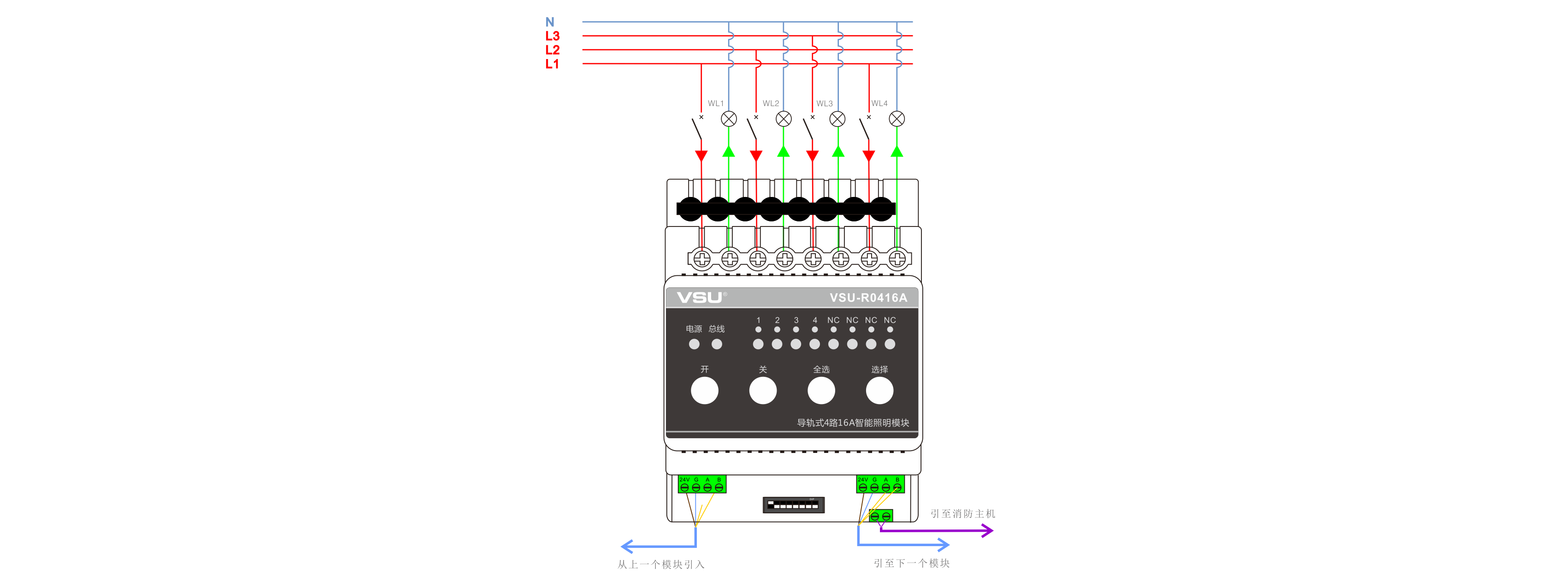 本產(chǎn)品為導(dǎo)軌式安裝,含4路智能繼電器,每回路可獨(dú)立控制3520W燈具的開(kāi)關(guān),帶應(yīng)急按鍵,LED燈時(shí)時(shí)指示各個(gè)回路開(kāi)關(guān)狀態(tài)