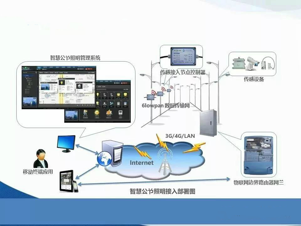 智慧照明又可以叫智慧公共照明管理平臺、智能路燈或智慧路燈,是根據(jù)運(yùn)用專業(yè)、高效、可靠的電力線載波通訊技術(shù)和無線GPRS/CDMA通訊技術(shù)等,實(shí)現(xiàn)對路燈的遠(yuǎn)程集中控制系統(tǒng)與管理方法,具備根據(jù)···